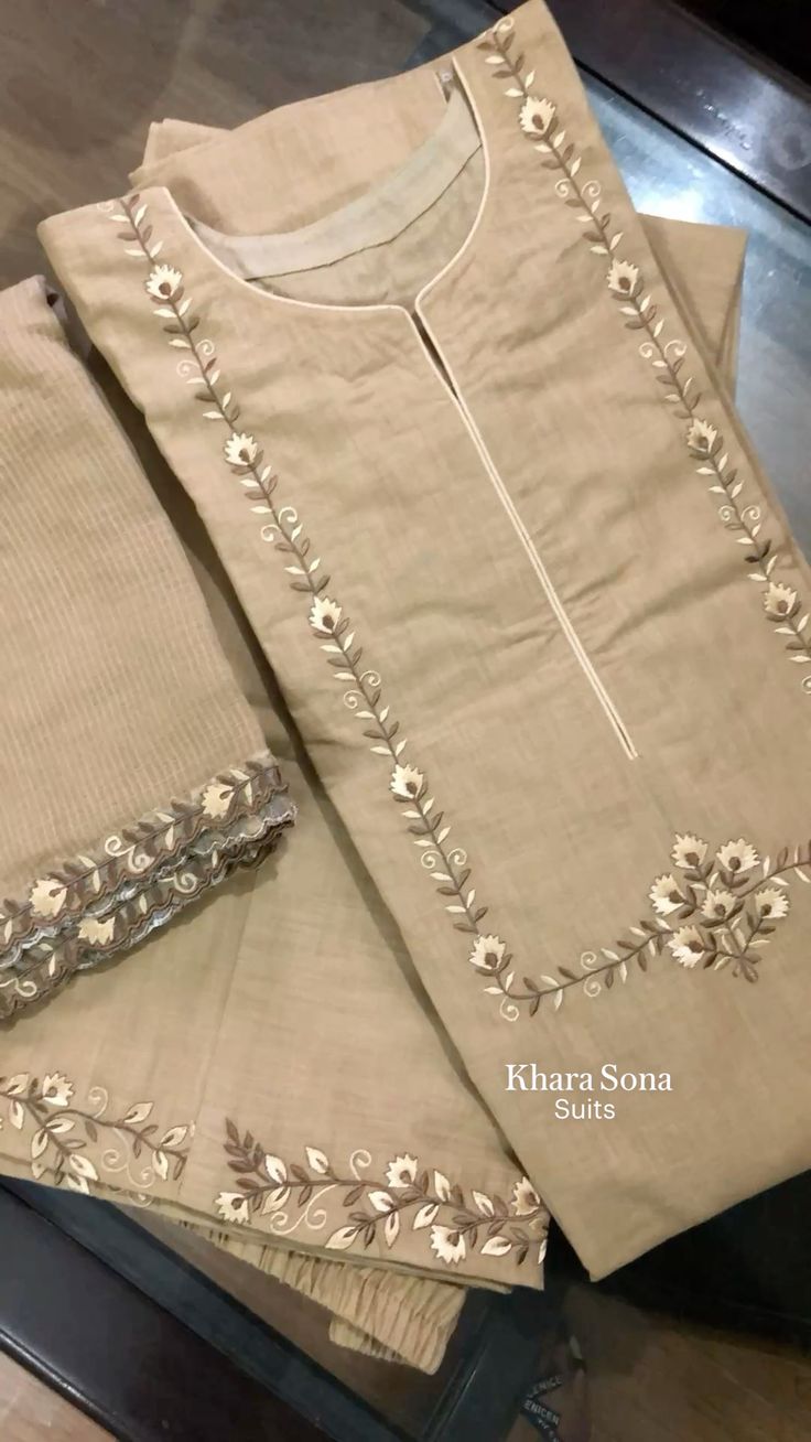 Exquisite Embellishments: The kameez (top) features intricate Zari and stone work, highlighted by three distinct floral-inspired motifs cascading down the front and a heavily embroidered border at the hem.